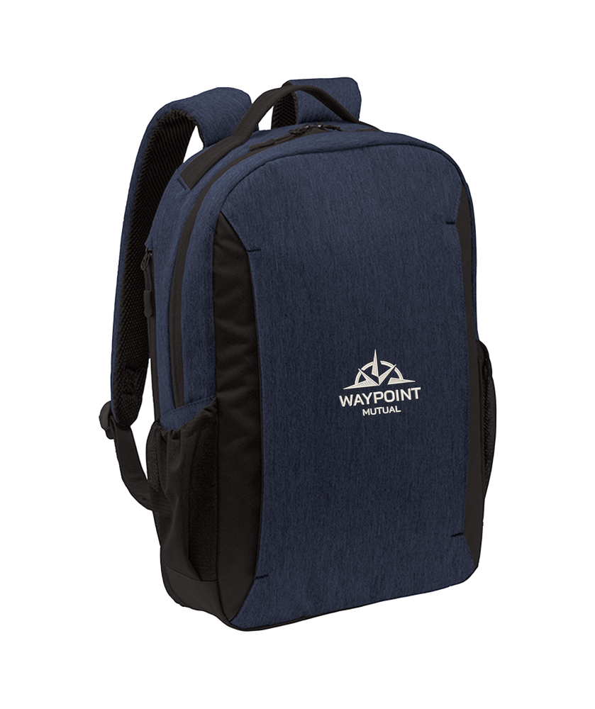 • This streamlined pack has a modern, heathered fabric and keeps your laptop and other must-haves organized and secure. • 600 denier heather polyester, 300 denier polyester canvas • Roomy main compartment • Large office compartment • Side-entry, padded laptop compartment • Air mesh padded shoulder straps • Large front side zippered pocket for easy decoration • Luggage trolley strap on back • Laptop sleeve dimensions: 17.5"h x 12.25"w; fits most 15" laptops • Dimensions: 17.5"h x 12.25"w x 4"d; Approx. 858 cubic inches