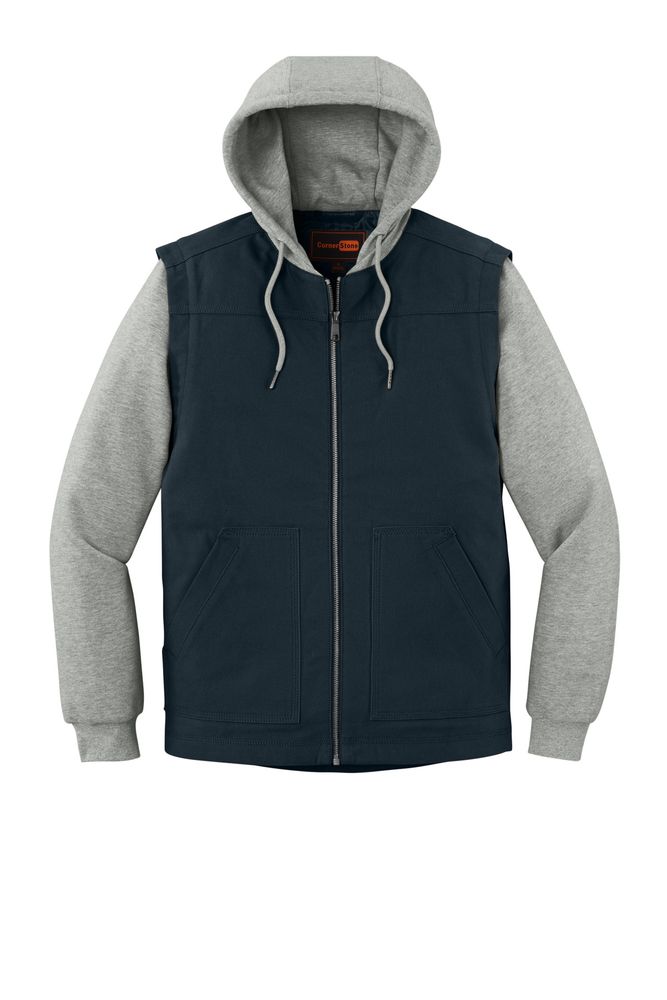• Hardworking duck cloth and durable fleece join in this faux layered, inseparable 2-in-1 jacket.